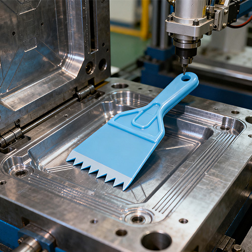 Литье пластиковых скребков под давлением относится к функциональным компонентам, производимым в процессе литья пластмасс под давлением, которые используются для удаления остаточных веществ (таких как пыль, жидкость, порошок, вязкие материалы) с поверхностей. Его основная конструкция обычно включает в себя основной корпус скребка (рабочий конец, контактирующий с очищаемой поверхностью), соединительную часть ручки (или интерфейс для установки), а некоторые модели также включают в себя вспомогательные конструкции, такие как ребра жесткости и противоскользящие узоры. По сравнению с традиционными металлическими скребками (легко ржавеют, тяжелые) или резиновыми скребками (плохая износостойкость, легко деформироваться), пластиковые скребки для инъекций обладают преимуществами, заключающимися в легкости, устойчивости к коррозии и высокой индивидуализации, и широко используются в домашней уборке, промышленном производстве, пищевой промышленности, печати и упаковке, адаптируясь к потребностям очистки в различных сценариях (например, очистка плоских поверхностей, очистка канавок, выравнивание материала).