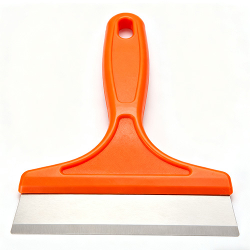 Скребки для чистки кухни: в основном изготовлены из полипропилена, с дугообразным рабочим концом (адаптируется к дну кастрюли и краям раковины), краевым желобком R0,8-R1,2 мм (чтобы не царапать кухонную посуду) и противоскользящими рисунками на соединительной части ручки. Используется для удаления пригоревших пятен со дна кастрюль и остатков пищи в раковинах, весит 50-80 г, удобен для работы одной рукой.